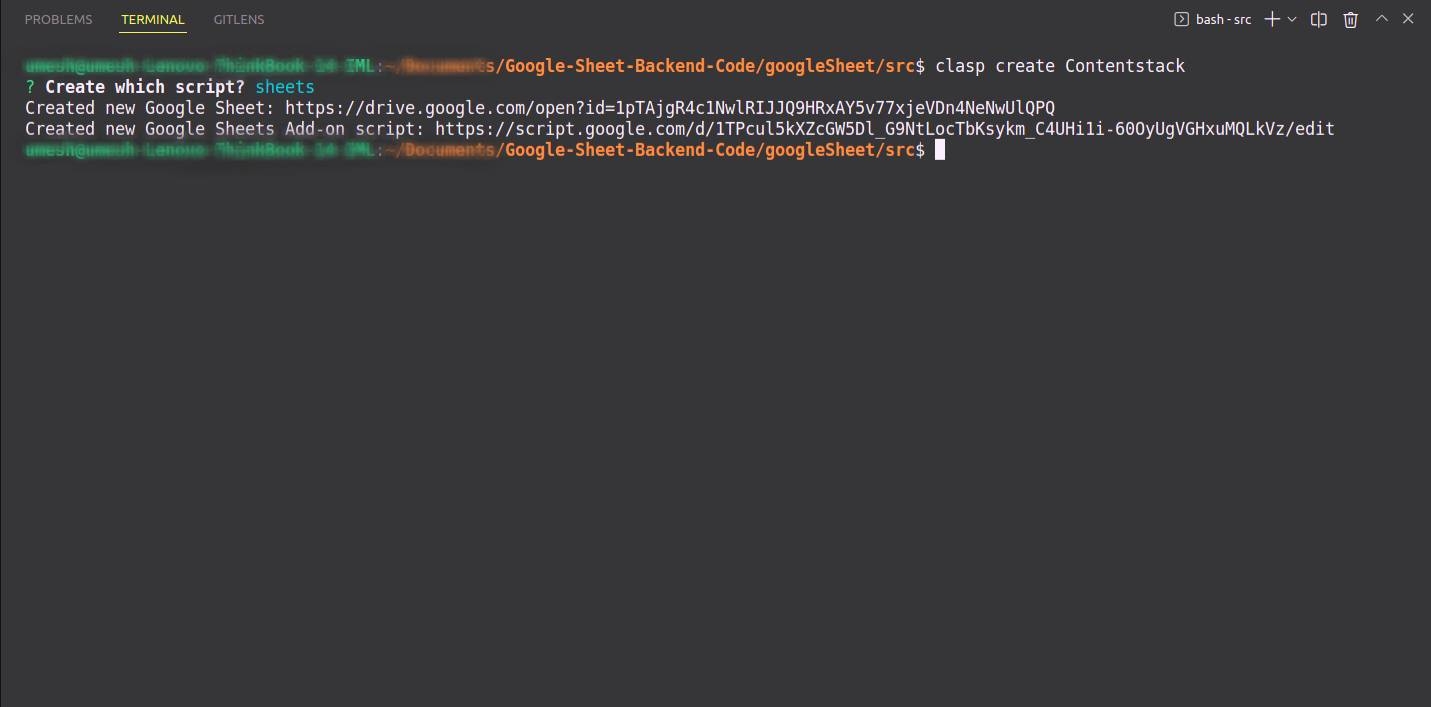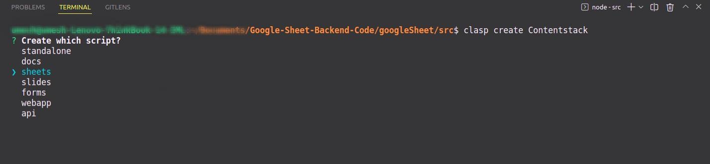 In the next step, we are going to create our App Script Project from the terminal, add your title of project in the place of [scriptTitle].