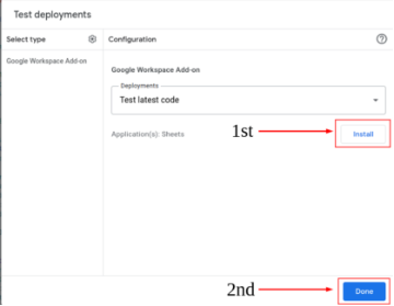 - The next step is to click on deploy the project. After this select ‘Test deployment’. It will open modal, click on install then click on done. Now your project has deployed on google cloud.