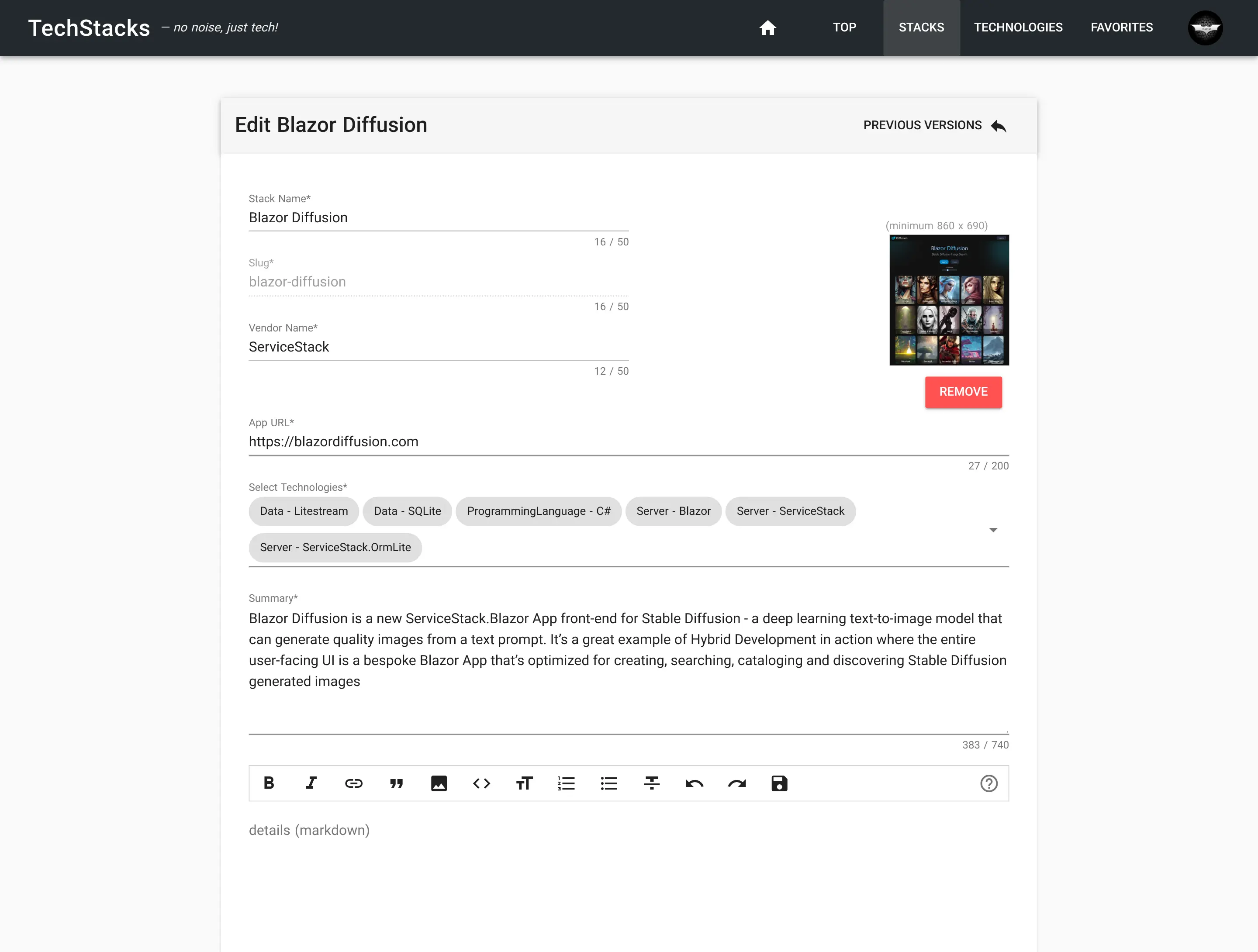 Whilst the TechStacks C# ServiceStack backend is over a decade old, its UI has undergone multiple migrations, with the last version rewritten 7 years ago.