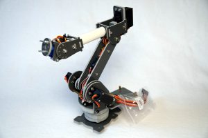This 6-Axis Desktop Robotic Arm is controlled by a Raspberry Pi with a web interface